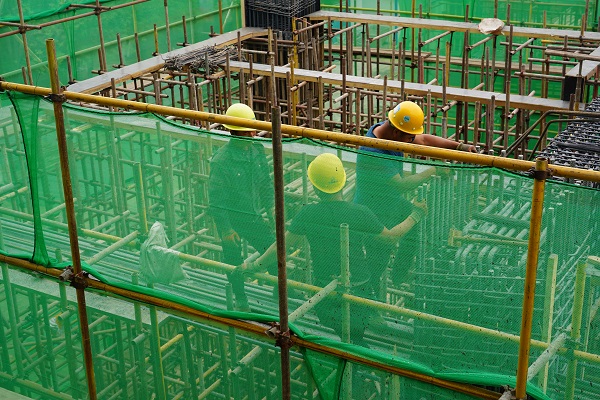 負(fù)責(zé)該工程的工作人員賈玉龍介紹,工程今年3月20復(fù)工,現(xiàn)輸煤棧橋、渣廊渣庫(kù)主體部分已封頂,現(xiàn)風(fēng)機(jī)間框架結(jié)構(gòu)部分正熱火朝天的施工,工人們加班加點(diǎn)的推進(jìn)施工進(jìn)度,預(yù)計(jì)5月15日主體封頂。