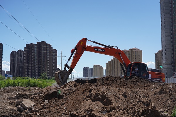 7月7日,筆者來到了供熱綜合管網(wǎng)項目第五標(biāo)段紅山街的一次網(wǎng)工程施工現(xiàn)場。紅山街一次網(wǎng)建設(shè)工程預(yù)計工期30天,管徑為 DN200--DN500,管溝長約1720米,項目完工后可帶動約160萬平方米的供熱面積。這次筆者來的是紅山街一次網(wǎng)的一個支線施工現(xiàn)場。